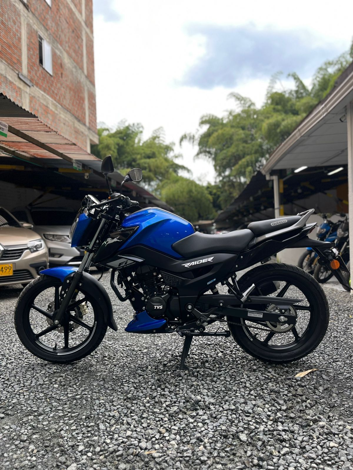 TVS RAIDER 125 Marca: TVS Línea o versión: RAIDER Combustible: GASOLINA Transmisión: MECÁNICA Cilindraje: 125 CC SOAT: 23/07/2026 Tecnomecánica: 23/07/2026